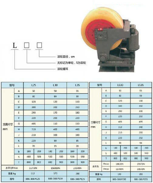 L系列單輪滾輪罐耳型號有:L25,L30,L35,L40,L45;