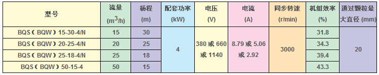 BQS(W)2.2KW的礦用隔爆型排污排沙潛水電泵技術(shù)參數(shù):