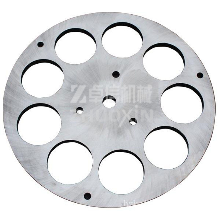 產(chǎn)品簡介:噴漿機(jī)鋼襯板作為噴漿機(jī)的易損件,所以使用是相當(dāng)廣泛的,每個(gè)噴漿機(jī)上都配有兩塊鋼襯板,和橡膠板一樣,兩個(gè)配套使用的,在圓形襯板外圈的孔為料孔,內(nèi)圈的孔為風(fēng)孔,各風(fēng)孔邊緣之間到各料孔邊緣之間的距離均不大于10毫米。