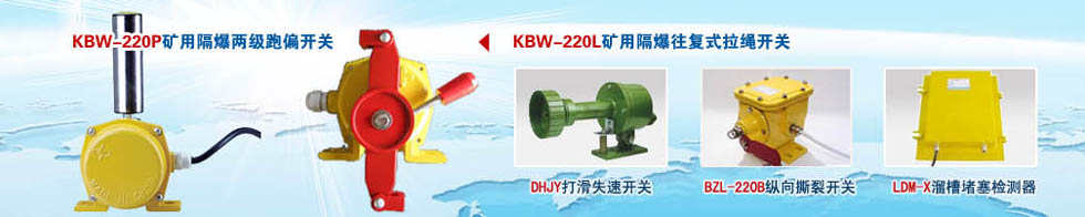 我公司跑偏開關(guān)型號有:KBW-220P兩級跑偏開關(guān)和HFKPT-12-30兩級跑偏開關(guān),一種為防爆型、一種為普通型,防爆型適用于各大化工廠、煤礦等,普通型適用面更為廣泛,兩者價格相差甚多,請廣大客戶慎重選購。